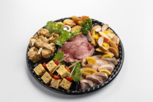 ローストビーフ・エビフライ・鴨ロース・唐揚げ・ウィンナー・ポテトフライ・スペイン風オムレツなどが入った洋風オードブルです。町内会の集まり・運動会・送別会・歓迎会・懇親会・忘年会・謝恩会など、様々なお集まりにて人気の商品です。