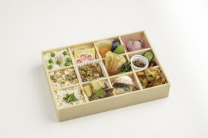 三種のご飯を中心に、春の味覚を十二枡に華やかに詰め込んだ特別な一折。