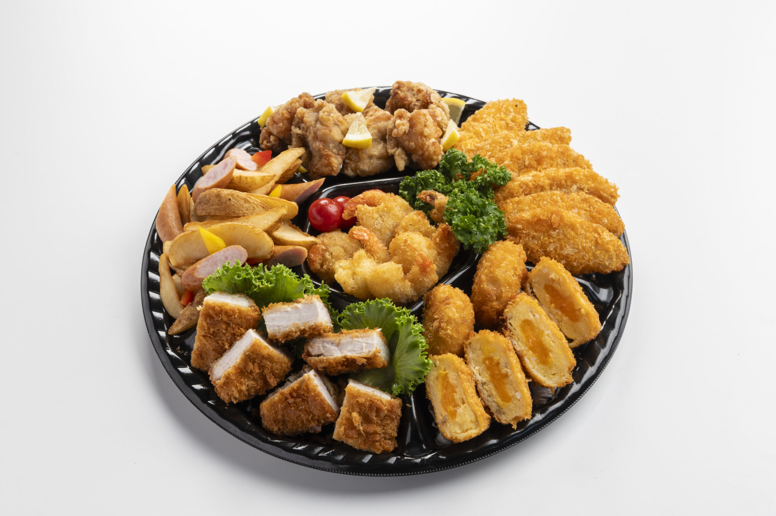 老若男女に大人気の揚物オードブル(5〜6人前)です。海老フライや唐揚げ・とんかつに白身フライなど、様々な人気揚げ物を盛り込みました。